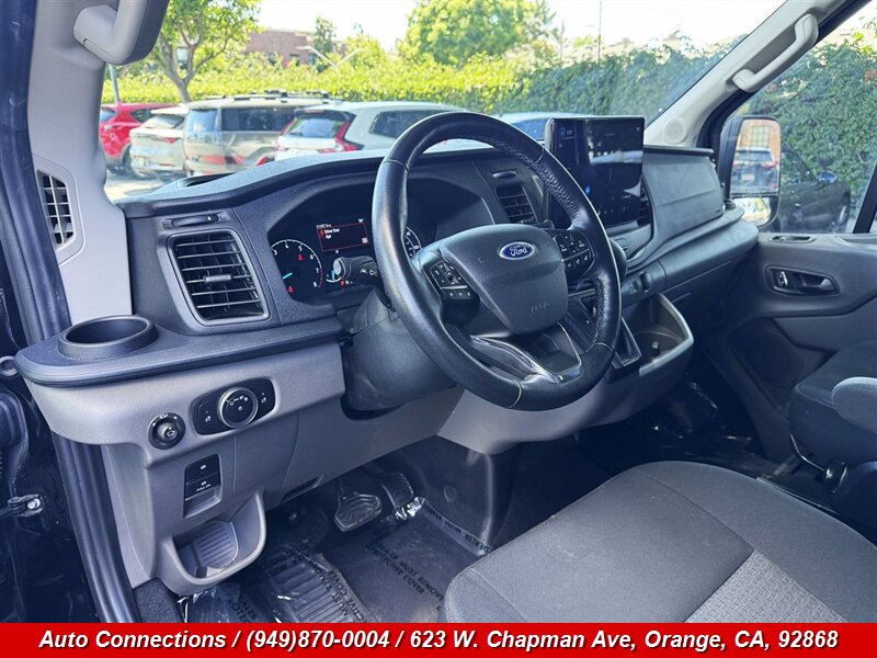 2023 Ford Transit 350 XL powered by a 3.5L Flex Fuel V6 delivering 275 hp and 260 lb-ft of torque. Factory-standard safety and convenience features include rearview camera, anti-lock brakes (ABS), electronic stability and traction control, multiple airbags, cruise control, power windows and locks, Bluetooth/USB connectivity, durable commercial-grade flooring, sliding side door and 60/40 split rear doors, and heavy-duty cargo tie-downs. Excellent overall condition, clean CARFAX with one owner and under 22,000 miles (averaging less than 6,000 miles/year).